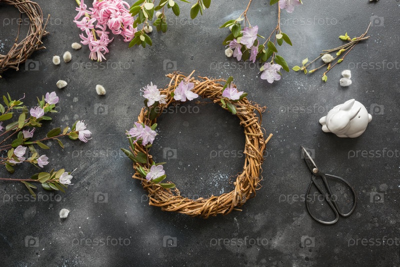 Весенний венок с цветами. Креативная плоская планировка. Вид сверху