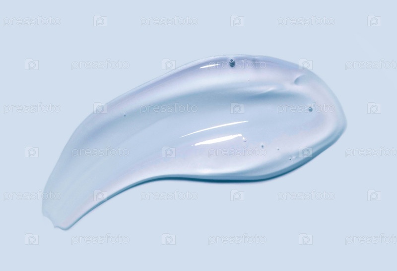 Косметическая прозрачная текстура. Гелевое пятно на синем фоне