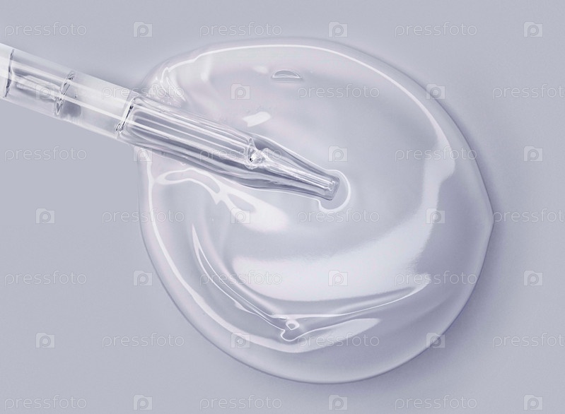 Косметическая прозрачная текстура. Гелевое пятно на сером фоне
