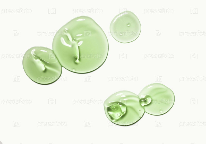 Косметическая зеленая текстура. Гелевое пятно на сером фоне