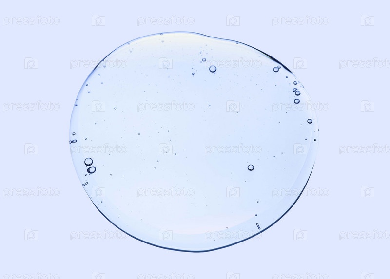 Косметическая прозрачная текстура. Гелевое пятно на синем фоне