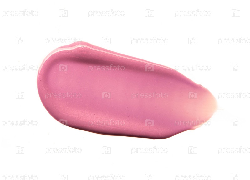 Образец пятна кораллово-розового цвета палитры блеска для губ изолирован на белом фоне
