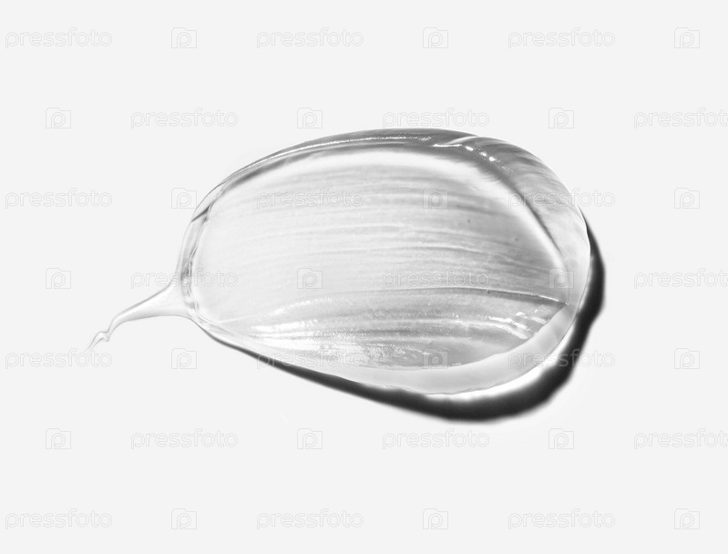 Косметическая прозрачная серая текстура. Гелевое пятно на белом фоне