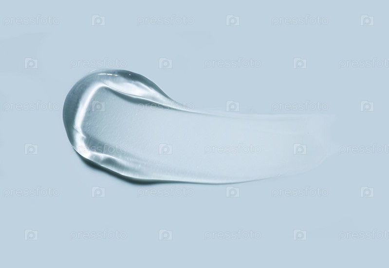 Косметическая прозрачная текстура. Гелевое пятно на синем фоне
