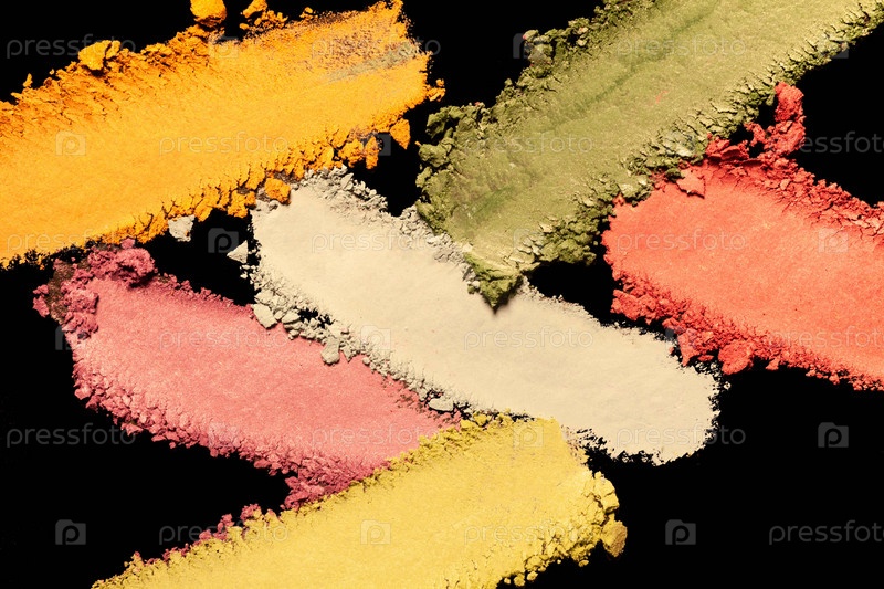 Косметические размазанные тени для век на черном фоне