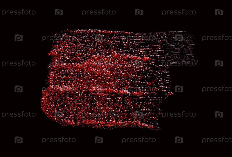 Образец пятна цвета блеска для губ красного блеска изолирован на черном фоне