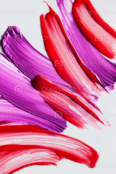 Образец пятна фиолетового красного цвета палитры блеска для губ изолирован на сером фоне