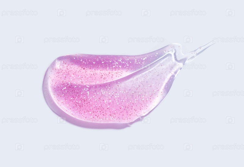 Образец пятна розового цвета блеска для губ, выделенный на сером фоне