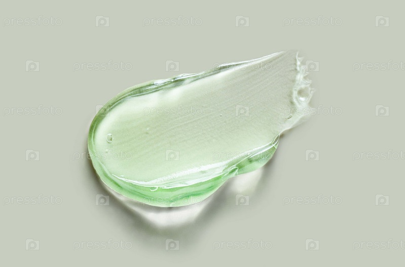 Косметическая зеленая текстура. Образец мазка геля на фоне шалфея
