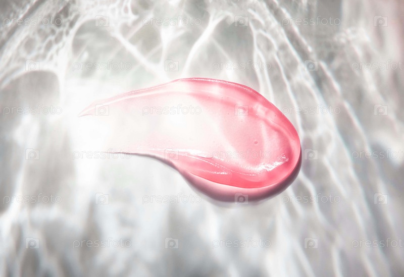 Косметическая розовая текстура. Образец мазка геля на теневом фоне