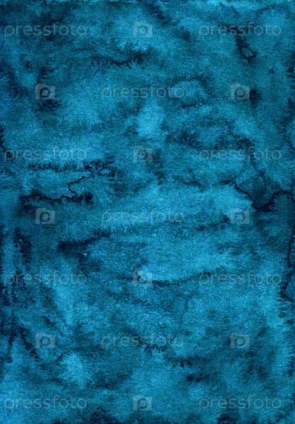 Акварель старый синий фон текстуры живописи. Ручная роспись глубокого бирюзового синего жидкого акварельного фона. Пятна на бумаге