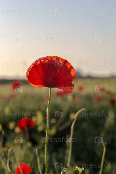 Красный мак (Papaver rhoeas) с бутонами на солнце