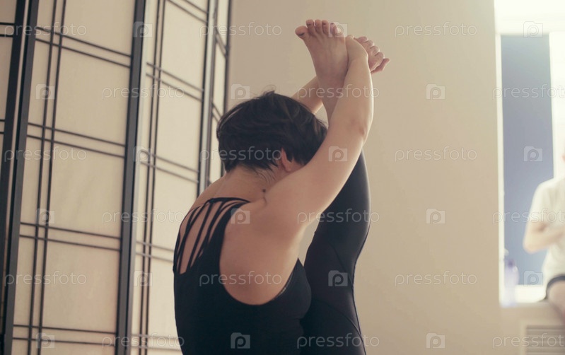 Молодая женщина, выполняющая асаны йоги в зале
