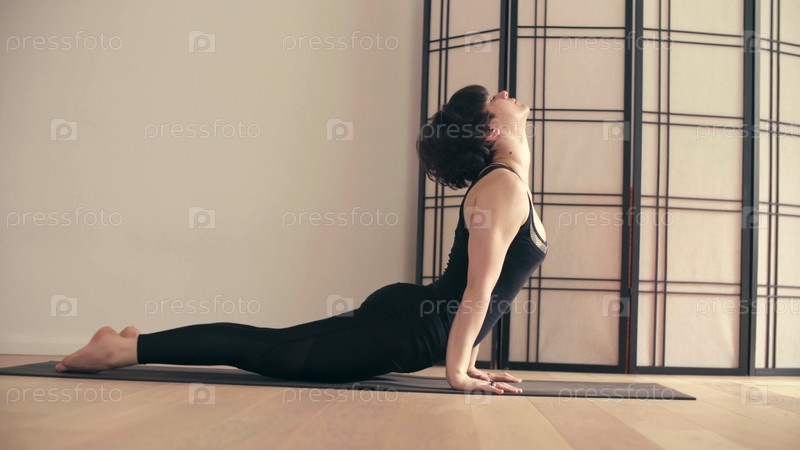 Молодая женщина, выполняющая асаны йоги в зале