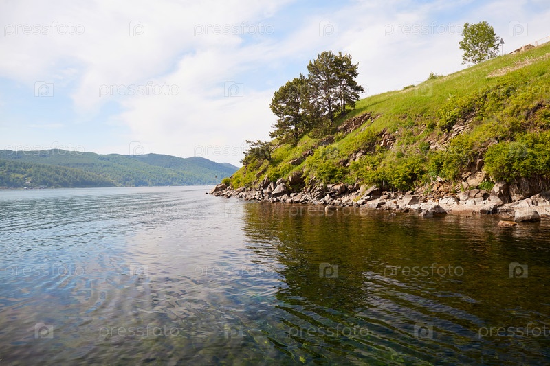 Река Ангара, озеро Байкал. Деревня Листвянка в летний день