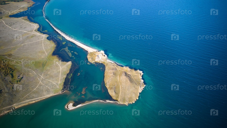 Озеро Байкал с воздуха. Вид на озеро Курма, мыс Цаган-Хушун