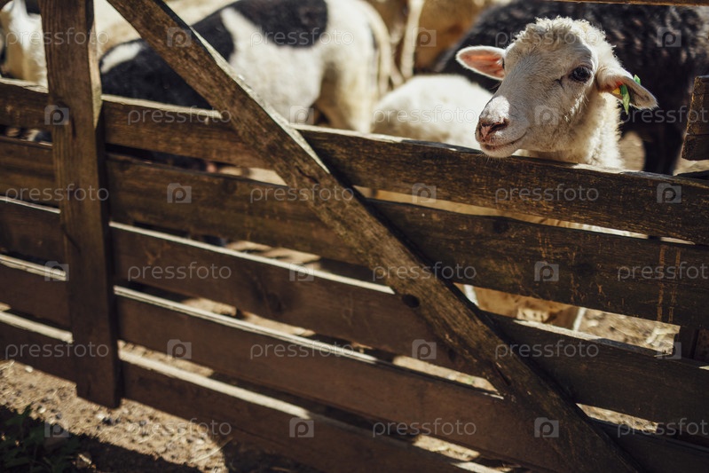 Группа овец на ферме. Современное сельское хозяйство молочно-мясного производства животноводческой отрасли