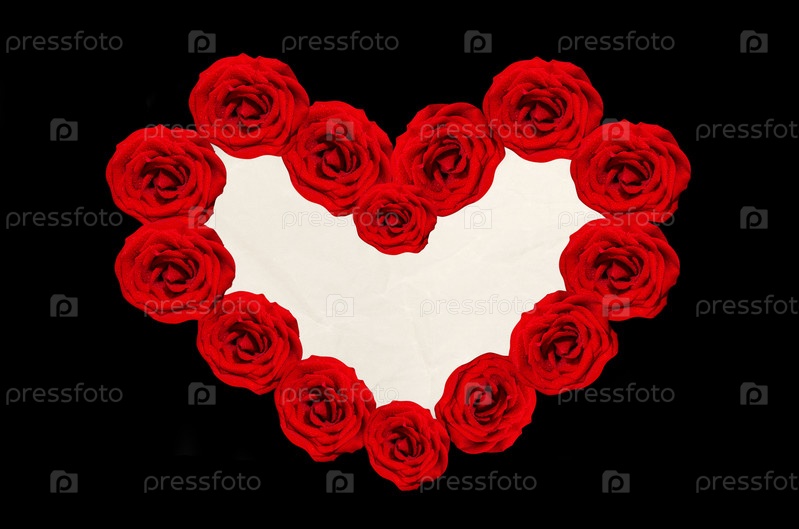 Рамка в форме сердца из красных роз для текста на черном фоне