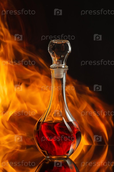 Виски в графине на фоне естественного пламени