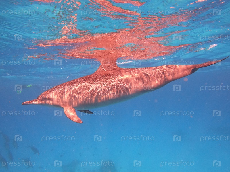 Дельфины плавают под водой в глубинах Красного моря в Египте