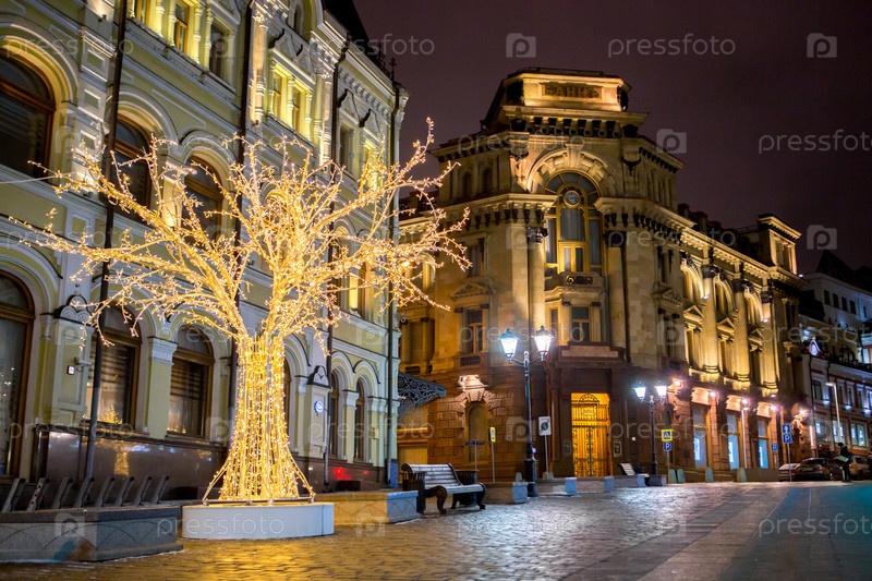 Новогоднее украшение Красной площади. Гирлянды, елочки, огоньки. Красивые праздничные пейзажи в городе Москве. Россия