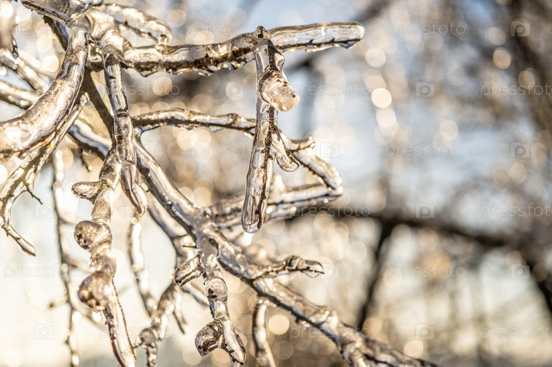 Естественный фон с кристаллами льда на растениях после ледяного дождя