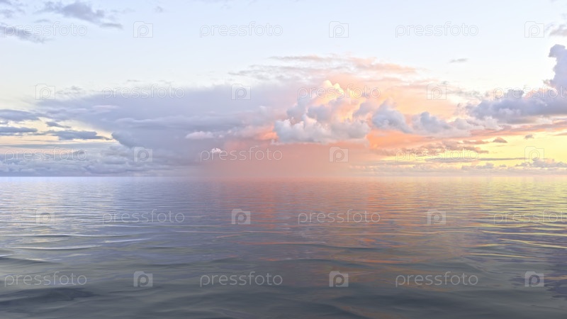 Морской пейзаж с волнами и розовым закатом