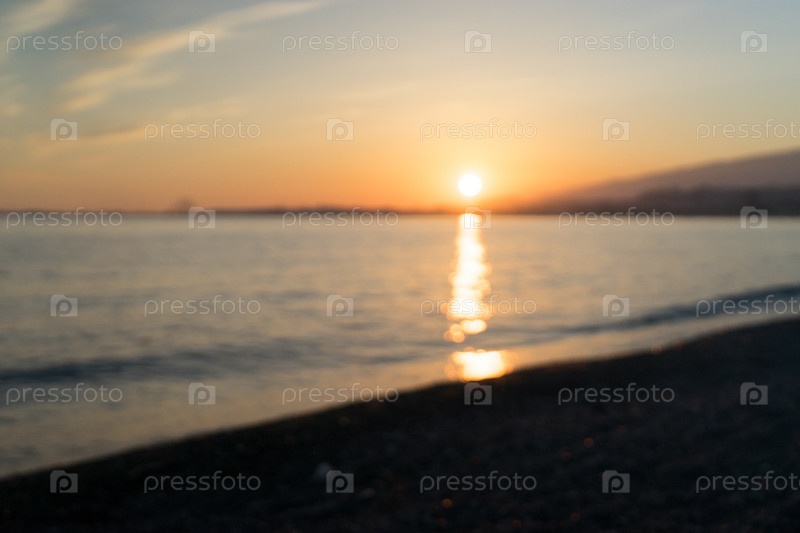 Морской пейзаж размытия фона и закат с отражением и боке в спокойном море