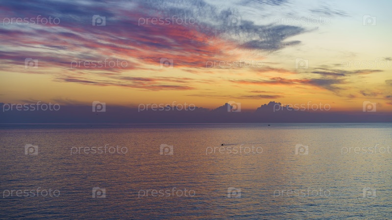 Морской пейзаж с красивым закатом над водной гладью