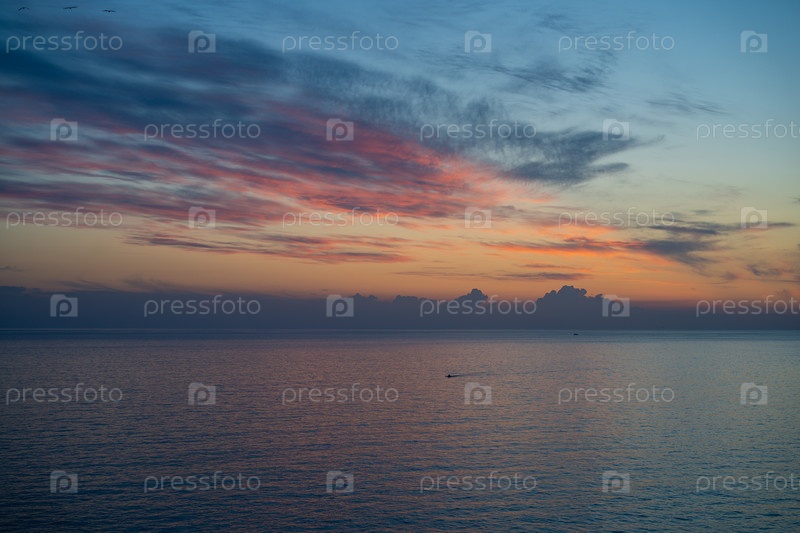 Морской пейзаж с красивым закатом над морем