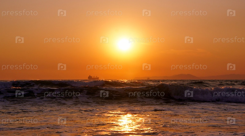 Закат морской горизонт грузовой корабль силуэт пейзаж