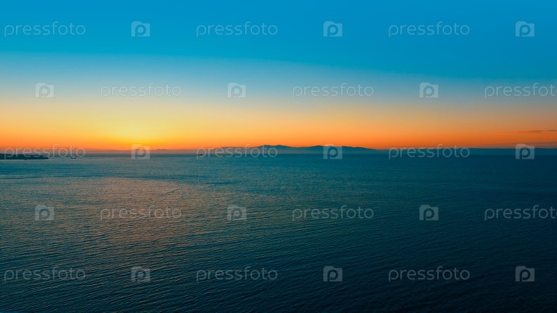 Морской пейзаж с оранжевым закатом над горизонтом