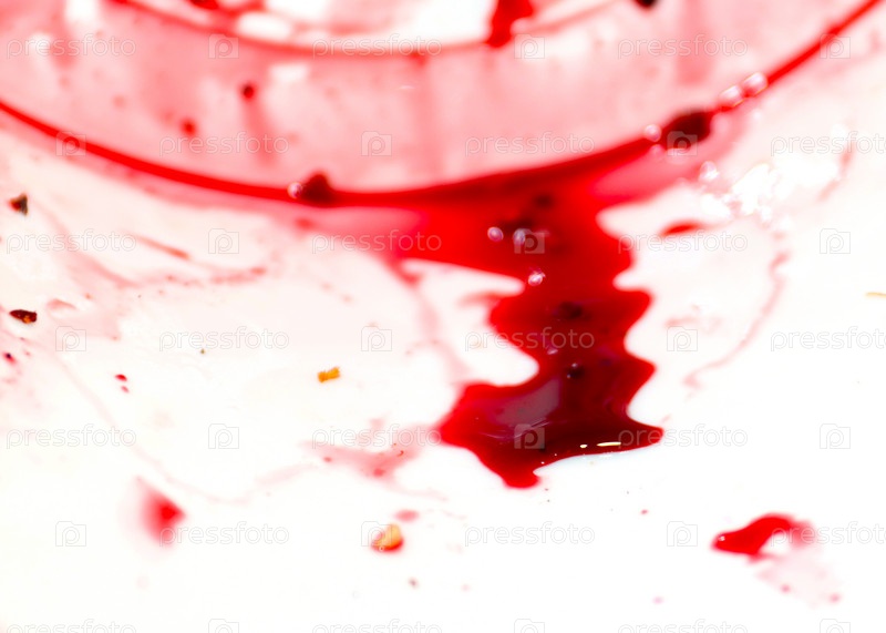 Кроваво-красные пятна и полосы жидкости на поверхности медицинской соли операционной