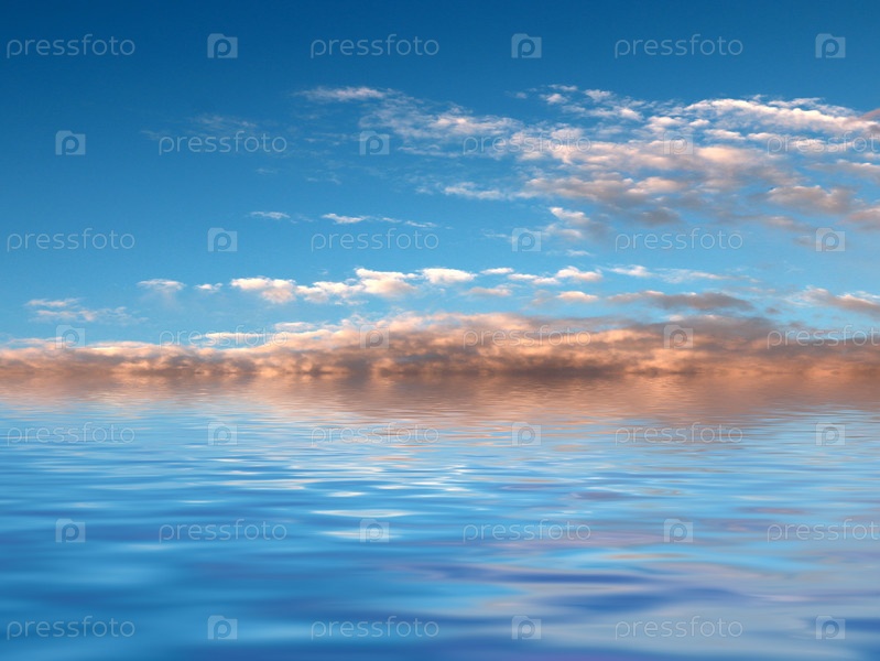 Темные грозовые тучи на закате и спокойная поверхность морской воды