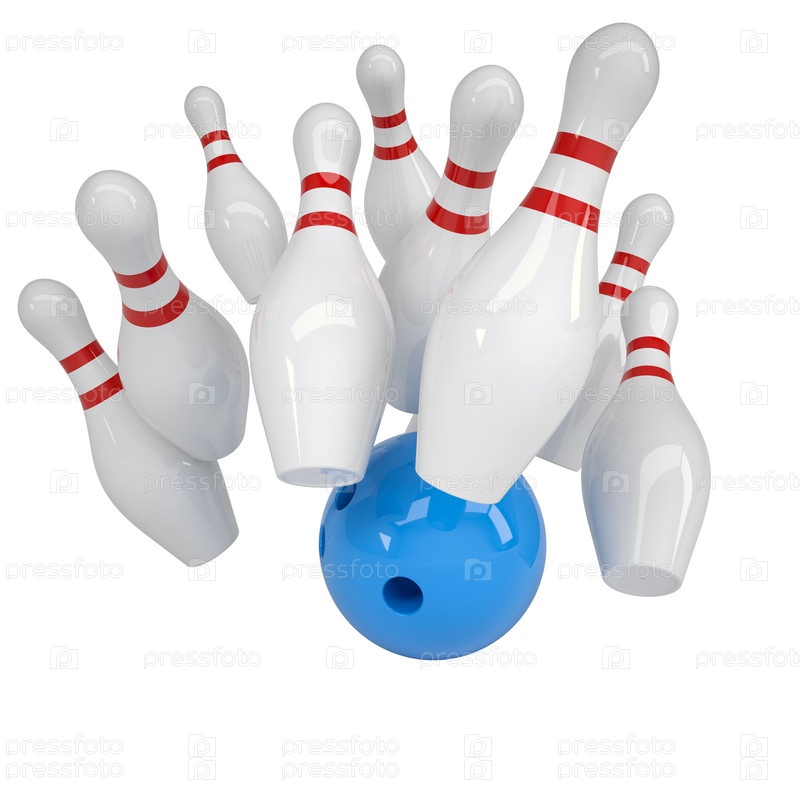 Синий шар и кегли для боулинга