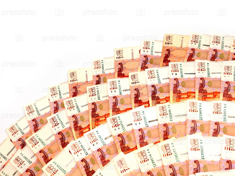 Бумажные банкноты пятитысячных российских рублей, выложенные в виде веера