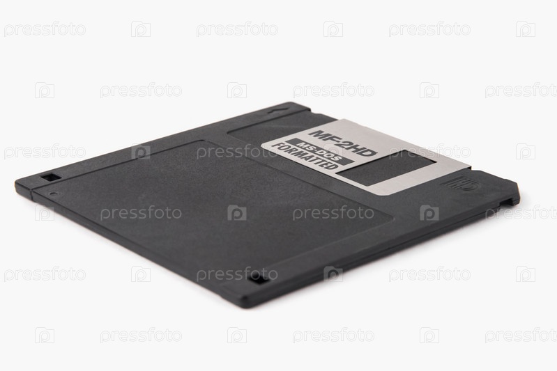 Передняя часть черной дискеты изолирована на белом фоне