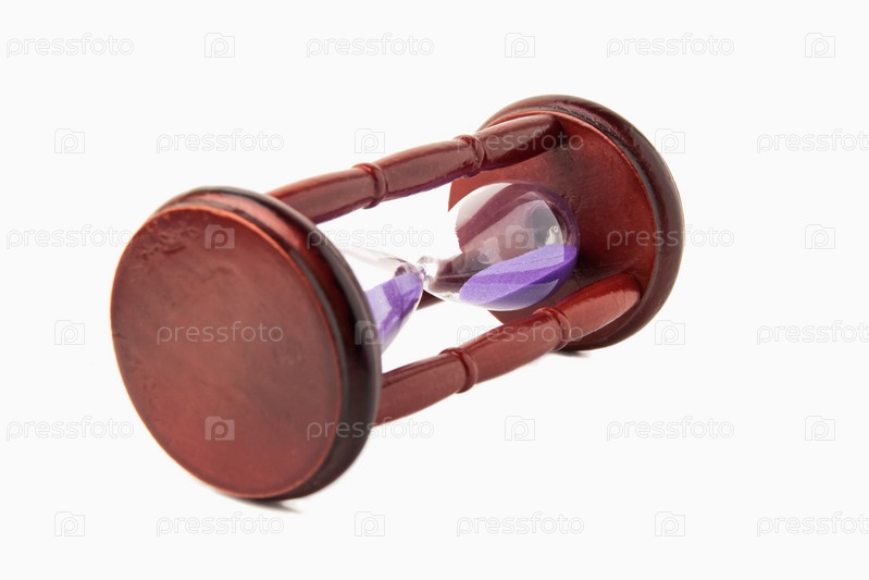 Деревянные старинные песочные часы сидят на изолированном белом фоне