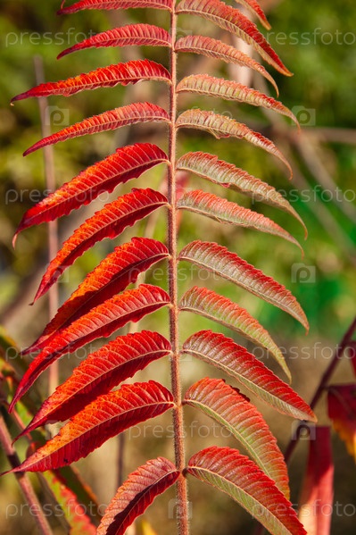 Ветка сумаха с огненно-красными листьями