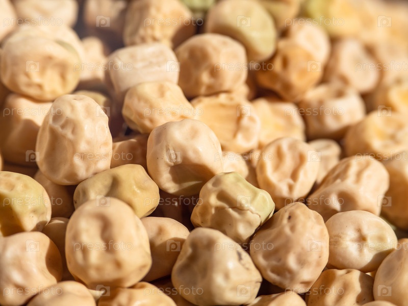 Несосредоточенные семена гороха макро-абстрактный естественный фон. Макрофотография светло-желтого гороха с малой глубиной резкости в центре. Куча сушеного гороха для пищевого фона