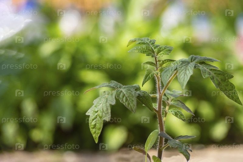 Молодые растущие помидоры в саду крупным планом. Рассада томатов растет в почве. Молодой саженец томатов, растущий в саду. Выращивание овощей дома
