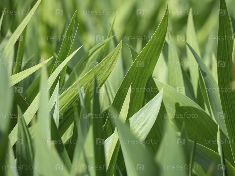 Мягкий зеленый текстурированный фон из многих листьев ириса, выборочный фокус в центре
