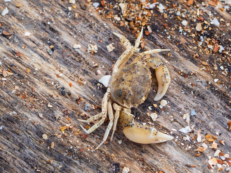 Маленький краб на деревянной поверхности вид сверху