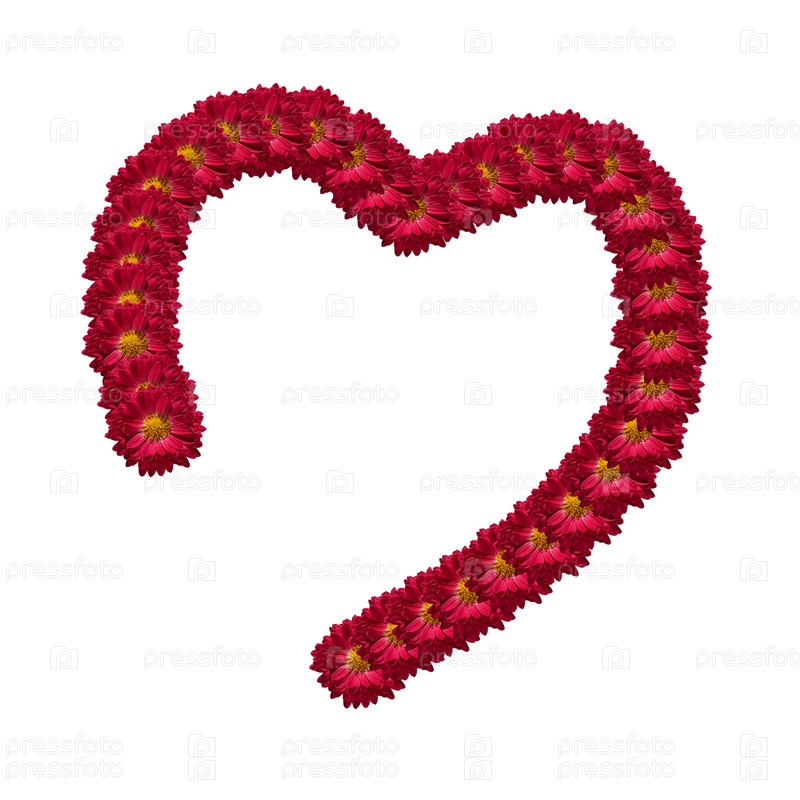 Символ сердца. Половина сердца с красными цветами хризантемы на белом фоне