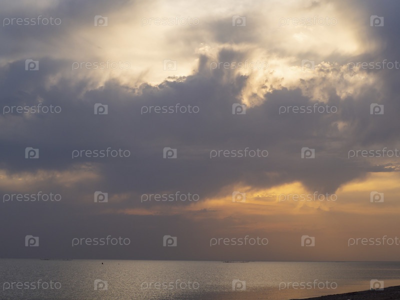 Облачное разноцветное небо над морской гладью воды. морской пейзаж на курорте