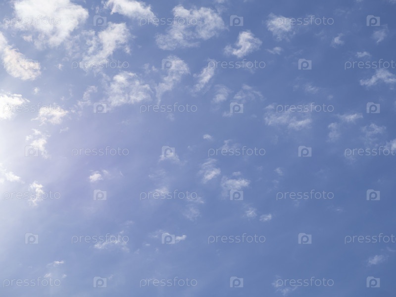 Фон голубого неба с облаками в солнечном свете