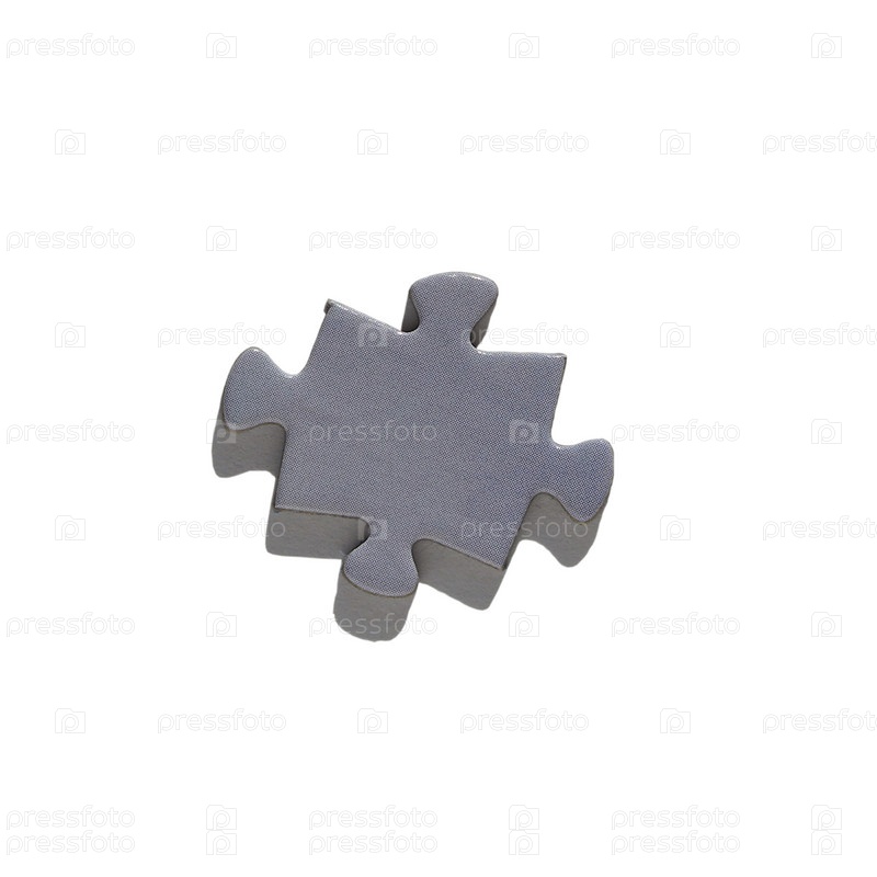 Крупный план серо-голубого кусочка головоломки с тенью, выделенной на белом фоне с контуром обрезки