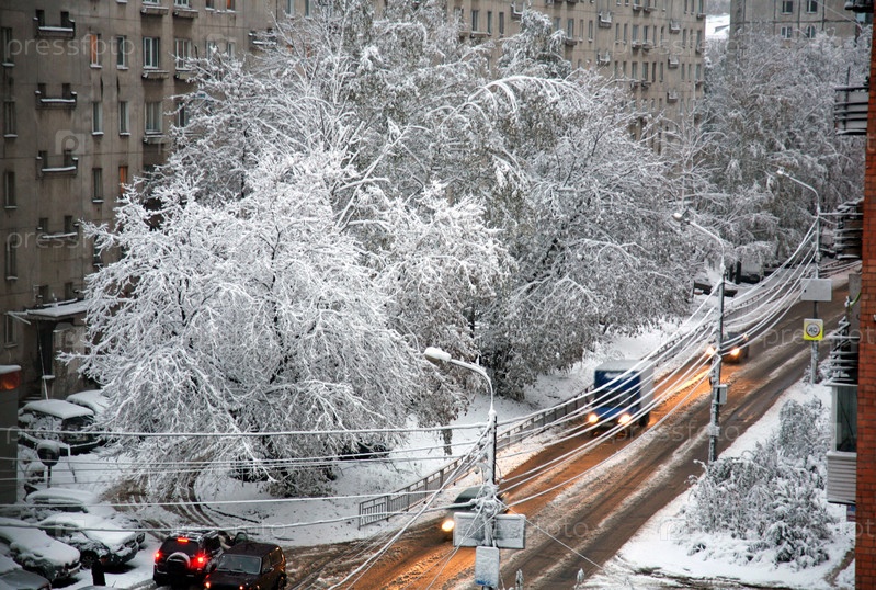 Утренний снег покрыл деревья. Улица Тимирязева. Нижний Новгород
