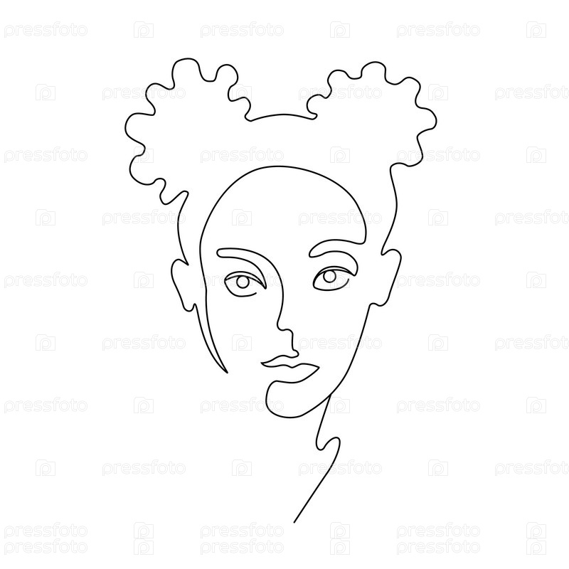 Линейный рисунок лица девушки. Силуэт женщины. Контур. Модель. Портрет. Мода. Одна линия. Трендовая векторная иллюстрация