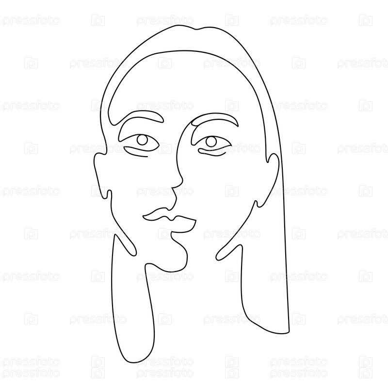Линейный рисунок лица девушки. Силуэт женщины. Контур. Модель. Портрет. Мода. Одна линия. Трендовая векторная иллюстрация